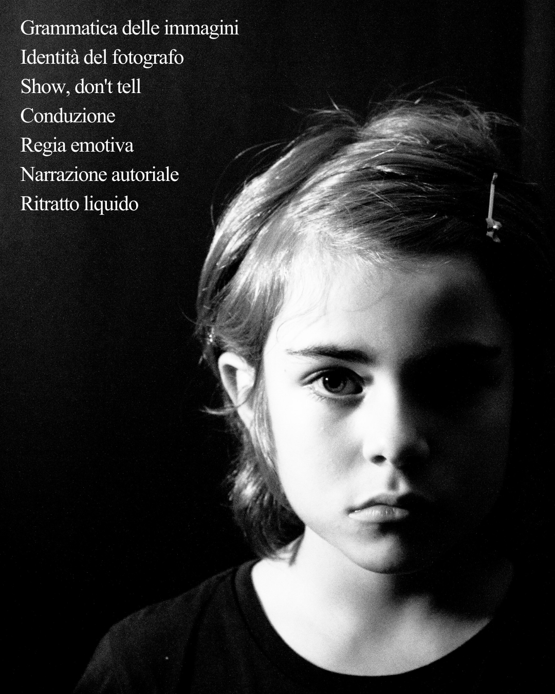 Un percorso intensivo dedicato a chi vuole apprendere il ritratto come processo psicologico, emotivo e narrativo, e non come semplice insieme di pose, schemi luce o regole tecniche.